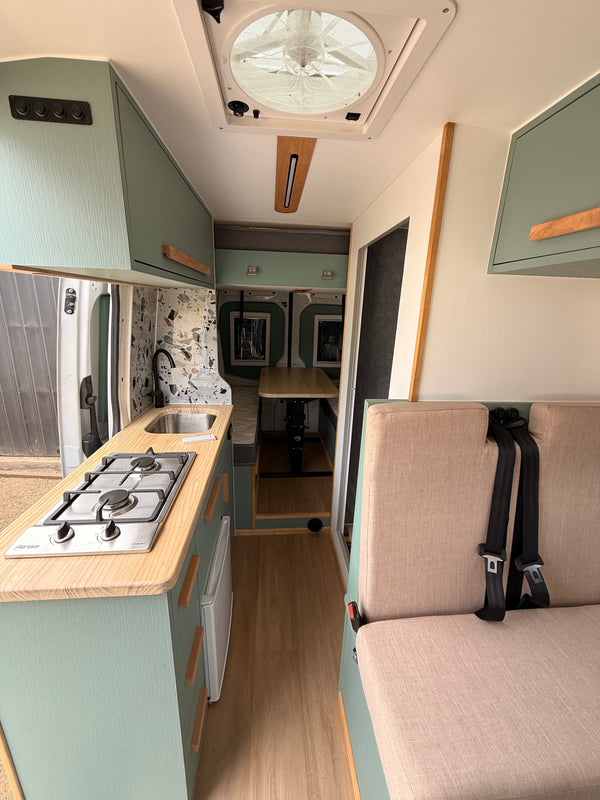 El resultado es un espacio completamente optimizado, pensado para permanecer instalado y convertirse en una verdadera casa rodante, diseñada para tu forma de viajar.