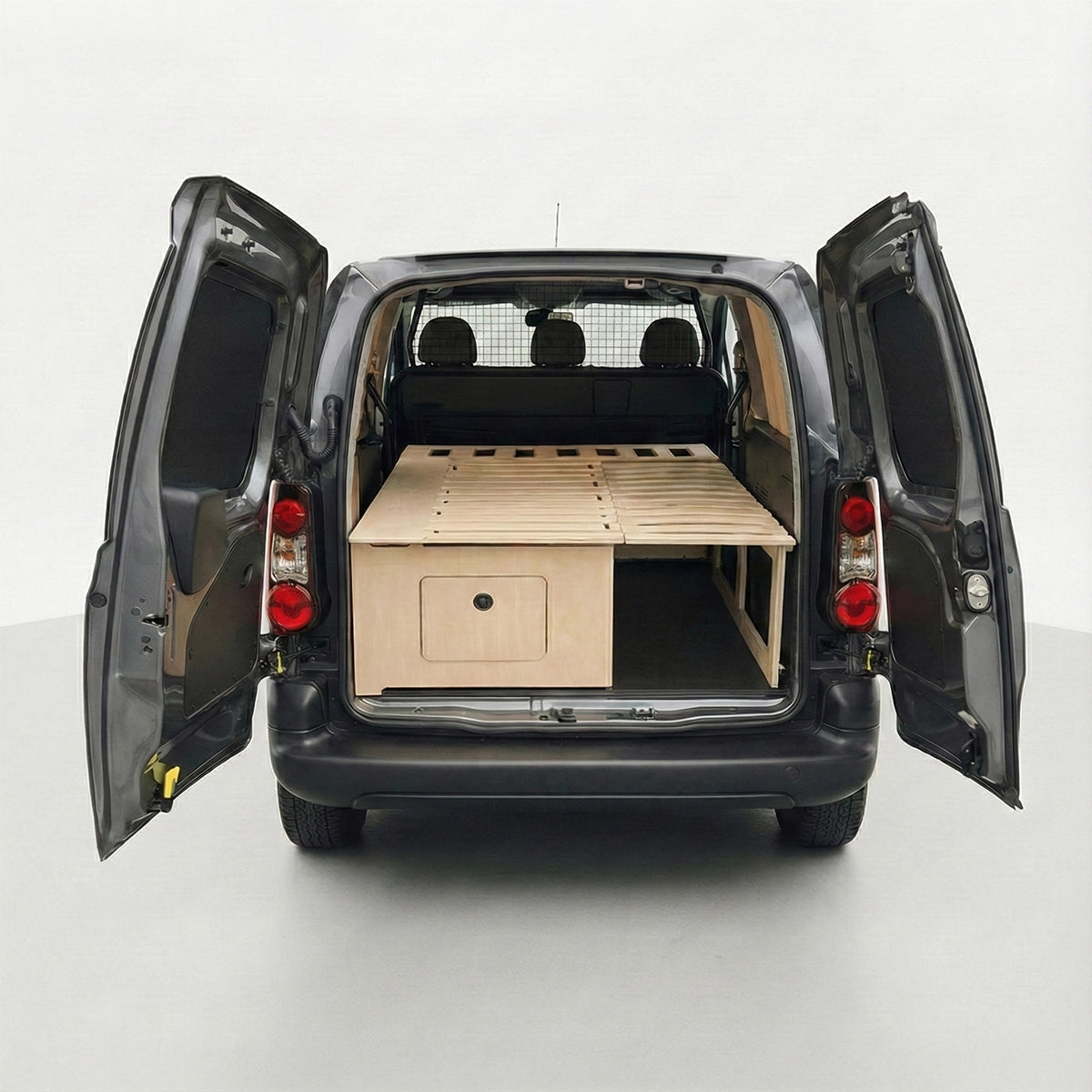 El módulo Tolten es el mas compacto de nuestro modelos, cuenta con una cama con una apertura máxima de 1.20 mts de ancho por 1.67 mts de largo. Ideal para furgones pequeños. Bajo su cama se encuentra un gran espacio de almacenamiento para llevar en orden todo lo necesario para la aventura.