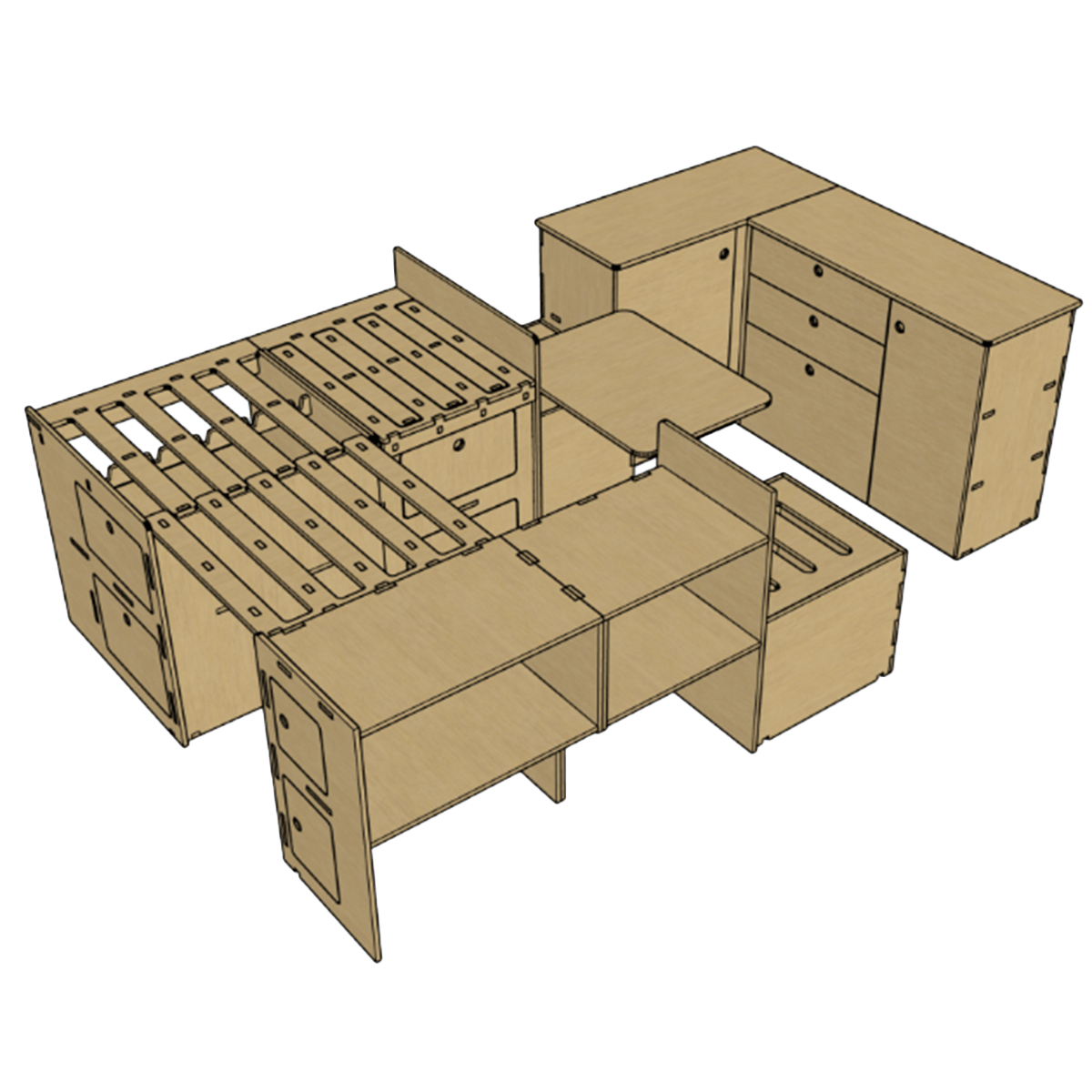 En Bruto Esta opción esta pensada para aquellas personas que quieren darle un aspecto único a sus módulos ellos mismos, por lo cual los modulos se entregarán lijados, listos para personalizar como mas te guste. Puedes aplicar pintura, poliuretano o algún barniz para proteger la madera. No es necesario, pero si es recomendable darle un acabado de protección a los modulos.